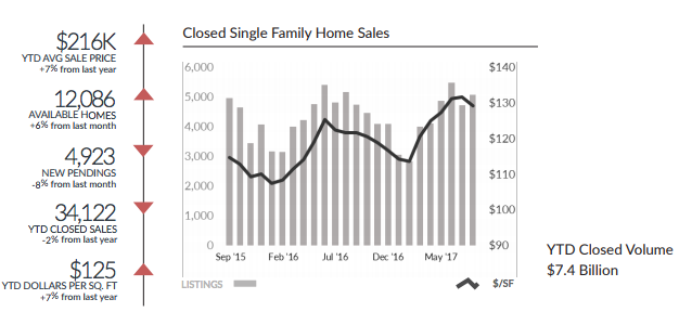 Active inventory rose 6% while new pendings fell by 8% in August. Supply levels are still low (about 2 months) in lower and middle price ranges, but jumped to over 5 months in the $400k-$800k range, and to 14 months in the >$800k range. With 749 listings priced over $800k, there were only 52 new August pendings and 52 closed sales. High-end sellers are competing for fewer buyers with more lofty expectations. They have to package and price accordingly.